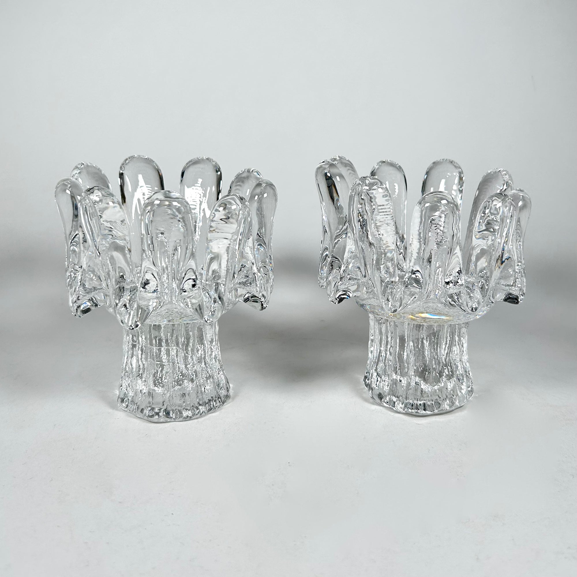Kosta Boda Icy Sunflower Footed Candle Votive Holder Set of 2