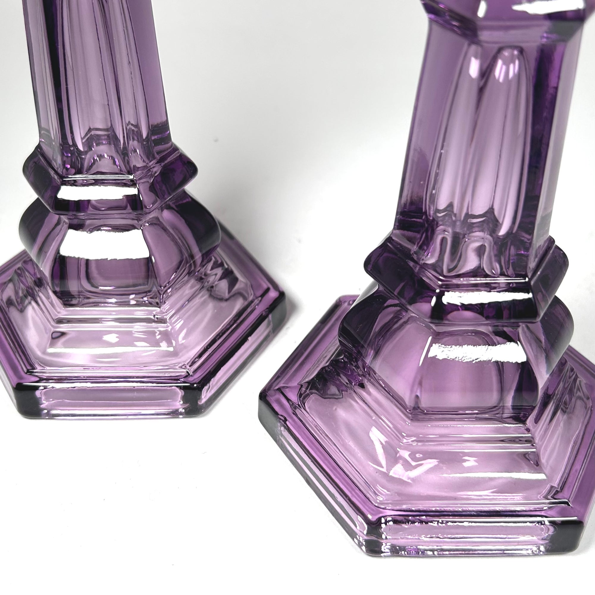 Vintage Amethyst Purple Glass Candlesticks by MMA Set of Two