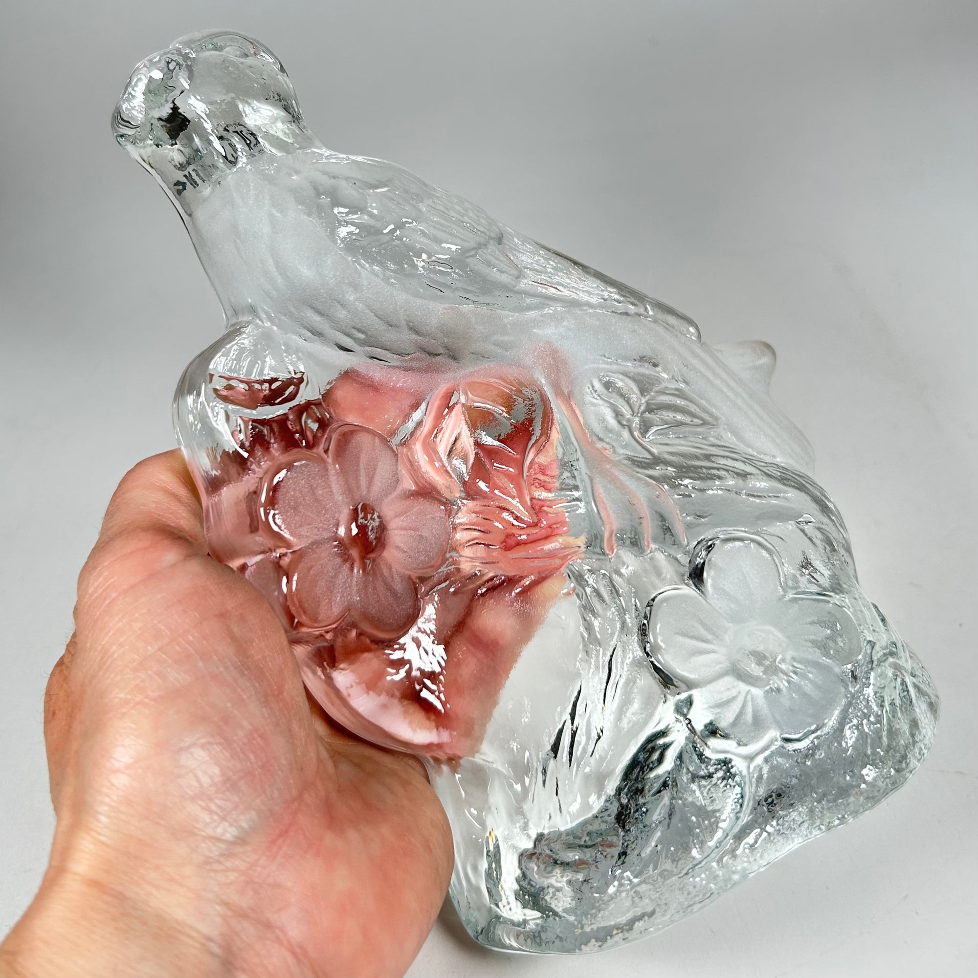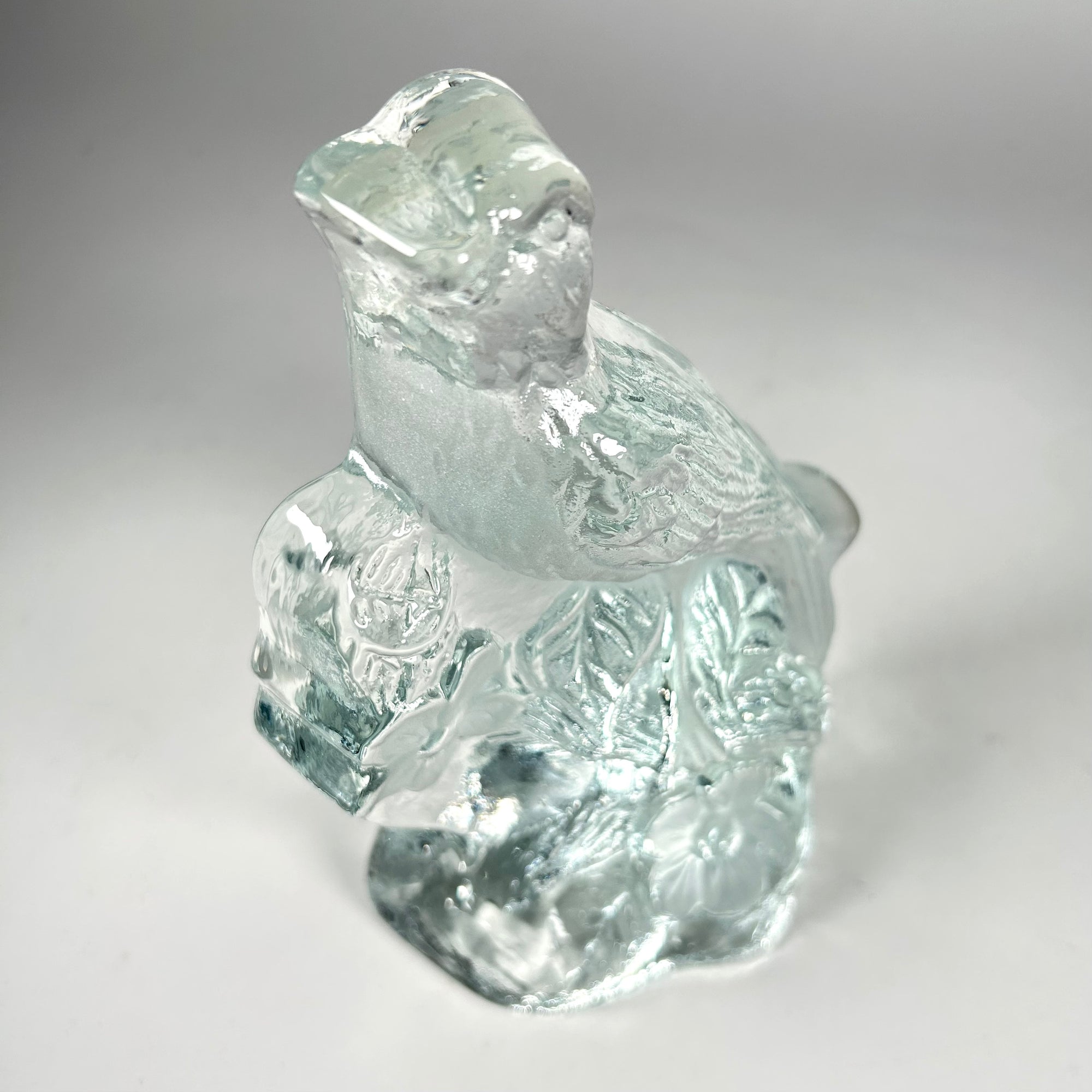 Viking Glass Bird and Flower Clear and Frosted Glass Figurine