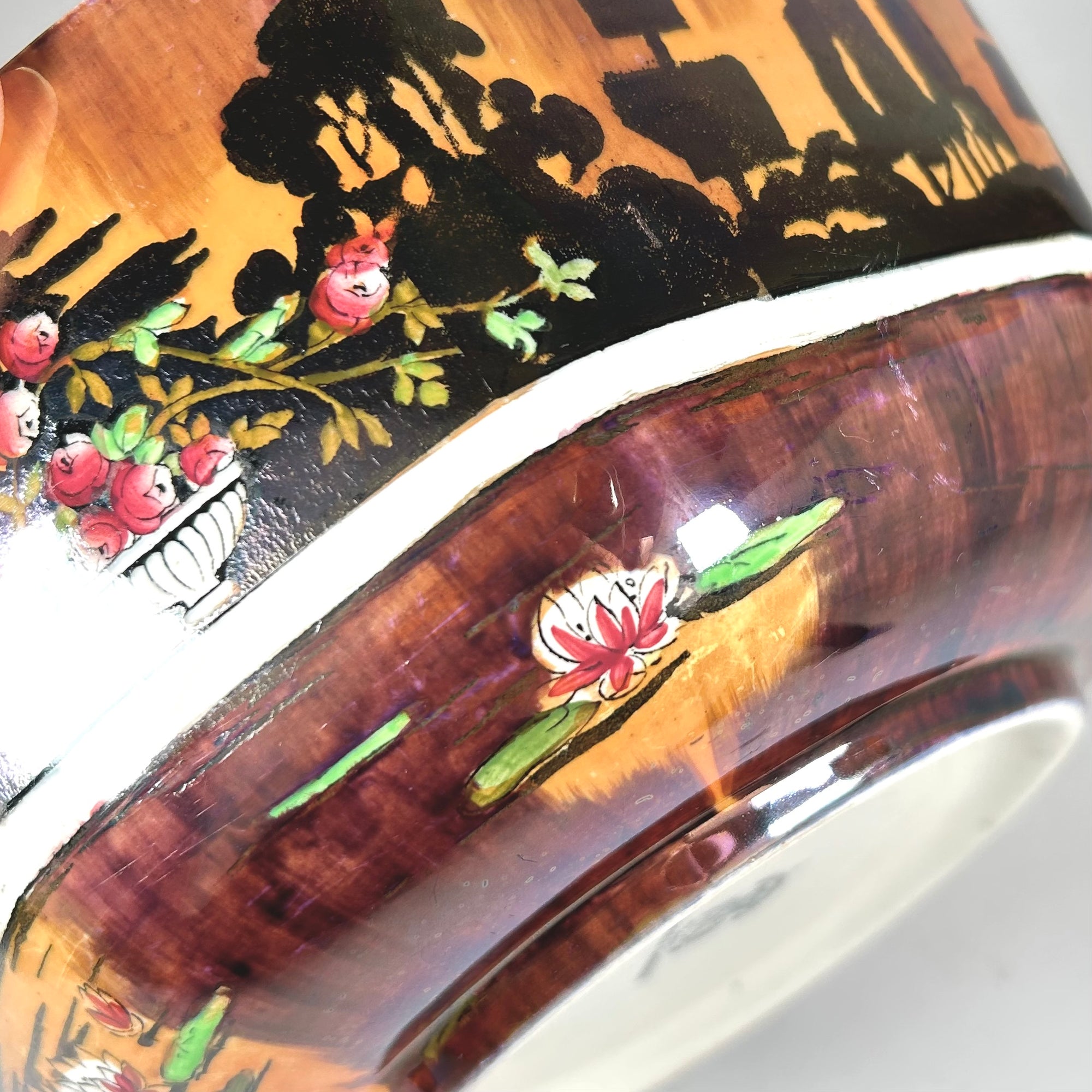 Wilkinson's Pan's Garden Art Deco Octagonal Bowl in Orange Luster